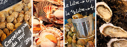 ביציאה מהמונית הפרידו בינינו לבין מדרגות המוזיאון שורות ארוכות של דוכנים מקורים ביריעות קנבס. שוק שכונתי, שגם השלג והקור לא יכלו למנוע ממנו להתקיים. מסורת היא מסורת. הרגלים הם הרגלים. יש יתרונות לנוקשות הצרפתית. אני מכורה לשווקים שכונתיים. אין בילוי חביב עליי בעיר צרפתית מאשר שיטוט ארוך וממוקד בין דוכני שוק האוכל השכונתי. חומרי גלם סופר-טריים מאיכות עליונה, מסודרים בקפידה ובאסתטיקה מעוררת קנאה. דוכני הדגים עם האויסטרים שנראים כמו סלעים קטנים שחופנים בתוכם פיסת אוקיינוס ריחנית ורוטטת. קיפודי הים הסגלגלים שבתוכם אוצר של שקי ביצים בכתום עז שטעמם ימי ומתקתק. הלובסטרים שעדיין זזים בעצבנות בין גבישי הקרח. דגי הסול הדקים והאלגנטים. צדפות קוקי-סאן-ז'אק יושבות בצדפתן הענקית כמו אלות ונוס קטנות בשמלה לבנה וענוגה, קרבט גריס – שרימפסים אפרפרים קטנטנים שבושלו לא מכבר במי מלח, נמכרים בקונוסים מנייר ונאכלים כמו פיצוחים.