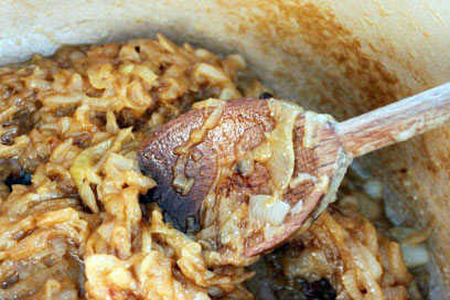 תהליך השחמת הבצל (צילום: מיכל וקסמן)