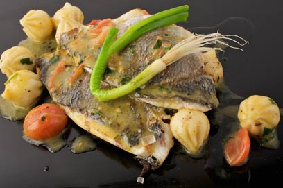 פילה דג ים על הגריל עם ניוקי במילוי גבינת עזים (צילום: דניאל לילה)