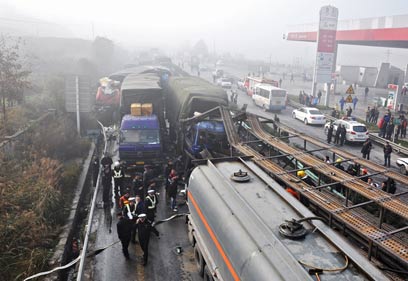 סין: 7 הרוגים בתאונת שרשרת של 100 כלי רכב