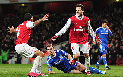 פברגאס חוגג מול צ'לסי. הפחד של ארסנל נעלם? (צילום: גטי אימג'ס)