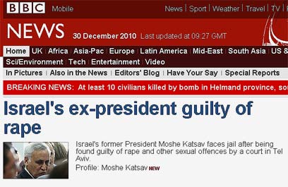 הרשעת נשיא המדינה לשעבר באונס היכתה בתדהמה רבים בישראל, אך גם העולם עוקב אחר הפרשה ביתר תשומת לב. כלי תקשורת רבים מדווחים היום (ה') בהרחבה על משה קצב, ובעיקר על זעם התושבים הנובע מאובדן "המצפן המוסרי".
