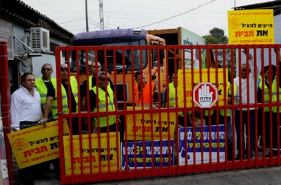 ראש עיריית ראשל"צ ועובדיו סוגרים את השערים (צילום: ישראל מלובני)