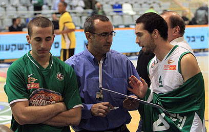 נאווי משוחח עם לאו, רגע לפני שריקת הפתיחה (צילום: חגי אהרון)