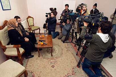 סקינה מוחמדי אשטיאני ובנה בראיון לתקשורת הזרה, אתמול (צילום: רויטרס)