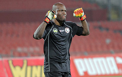 השוער סטיבן אהורלו באצטדיון ר"ג (צילום: אורן אהרוני)