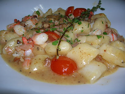 - ניוקי עם קאווה, ציר שרימפס וחמון.
