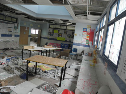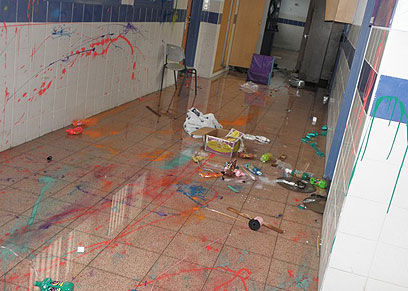 הנזק בביה"ס. הוועדה העממית מתכננת תהלוכת מחאה (צילום: אתר mkan)