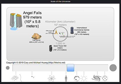 תוכלו להתחיל בגודל של אדם ולגלול בקלות מגלקסיה לגלקסיה או מגרגר חול ועד לפוזיטרון וכן הלאה - והכל עם מוזיקה חללית מגניבה שתורמת לאווירת "אין לי מה לעשות במשרד היום".