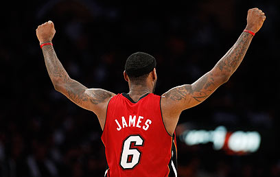 לברון ג'יימס חוגג. ערב בינוני של ההיט הספיק לניצחון במילווקי (רויטרס)