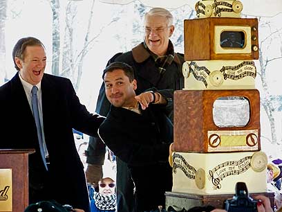 פנה מתרגש מהעוגה. גרייסלנד, אתמול (צילום: AFP)