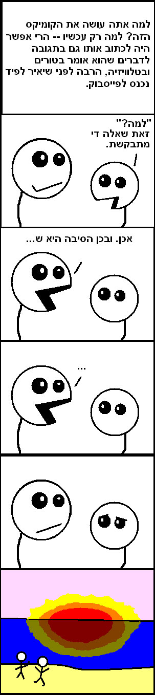 למה אתה עושה את הקומיקס הזה רק עכשיו? הרי אפשר היה לכתוב אותו גם בתגובה לדברים שלפיד אומר בטורים ובטלוויזיה, הרבה לפני שהוא נכנס לפייסבוק.