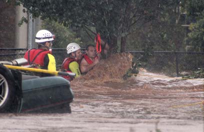 אזרחים נתקעו על גגות מכוניות ונאחזו בעצים (צילום: AP)