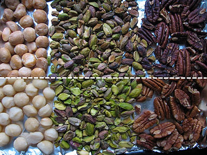 המון אגוזים לפני הקלייה, ואחרי (צילום: עודד רז)