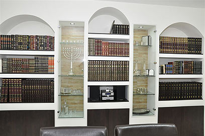 ספרייה ופריטי יודאיקה - בנישות מגבס. צילום: רחלי (עיצוב: יהודית שובקס)