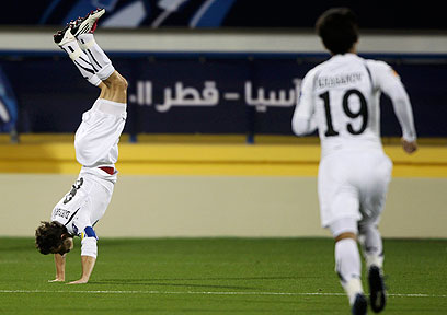 סרבר ג'פארוב האוזבקי חוגג את שער הניצחון (צילום: רויטרס)