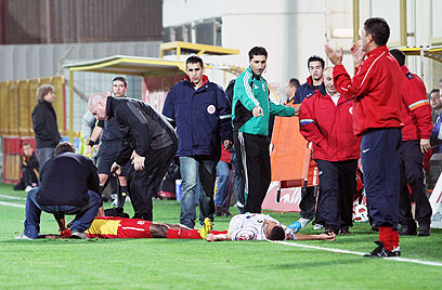 27': התנגשות ראשים בין סבע ורחמים צ'קול גרמה לחתך עמוק בשפתו העליונה של החלוץ, שפונה לבית החולים.