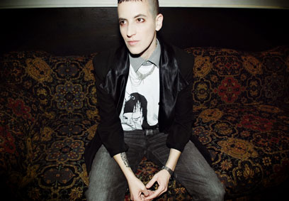 טי שירט בעיצוב klone. ז'קט ושרשרת: רובי סטאר. חולצה מכופתרת ומכנסיים: אוסף פרטי.