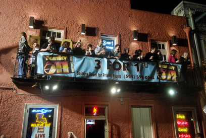 את שש שעות הנסיעה לניו-אורלינס גמענו בלגימה כמעט. בבוקר חלפנו על פני גרייסלנד, אחוזתו של המלך שהפכה לתעשיית כספים משומנת, ואחר כך עצרנו רק בסניפי המזון המהיר הפזורים לאורך הכביש המהיר. החיים המהירים. בניו-אורלינס, התברר שאיננו היחידים שחשבו על הרעיון המבריק לבלות בה את החג. העיר היתה מוצפת במבקרים, ובקושי רב מצאנו מקום לישון. "רק במרדי-גרא צפוף יותר", התוודה בפנינו בעל האכסנייה. יממה לפני ראשית השנה החדשה המו רחובות הרובע הצרפתי אדם, ואומנים השתלטו על פיסות הקרקע הפנויות. "היי ילד לבן", קרא אקרובט מקומי לעבר מתנדב מן הקהל שהוא עמד לנתר מעליו. "תזהר על הראש שלך כן?, אני לא נזהרתי ותראה מה קרה לי", המשיך האקרובט, "הפכתי לשחור".