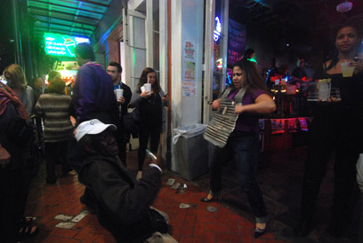בערב, באחד מן הבארים של רחוב ביל, שמפורסמים בנגינת הבלוז שאף פעם לא פוסקת בהם, פגשנו קבוצת בנות שנוסעות גם הן משיקגו לניו-אורלינס לכבוד השנה החדשה. העפתי בדן מבט מנצח, אבל הוא עדיין לא נכנע. הוא "הגיע מדבלין כדי לחגוג בשיקגו", הדגיש. הבנות בתגובה, סיפרו על מסורת ה-"Boobs for beads" (חרוזיים תמורת דדיים בתרגום זוגי) הנהוגה בניו-אורלינס. דן השתכנע.