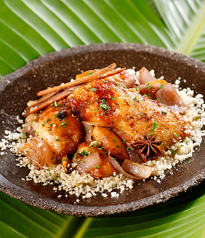 שוקיים ב"טנזיה", קוסקוס, שקדים, צנוברים וטימין (צילום: דניה ויינר)