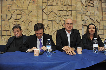 אין חיוכים. יחימוביץ, ברוורמן, הרצוג ובן-אליעזר בכינוס (צילום: בן קלמר)