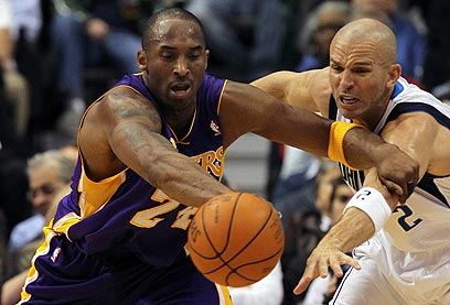 ג'ייסון קיד עוצר את קובי בראיינט. ניצחון לרכז הוותיק (AFP)