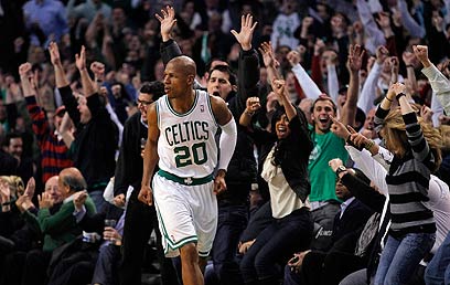 ריי אלן אחרי הזריקה שהפכה את המשחק לטובת בוסטון (רויטרס)