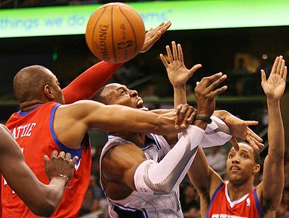 דווייט הווארד בין שחקני פילדלפיה. ניצחון בהארכה (AP)