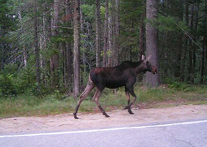 פיצוי על היעדר תמונות מהמפגש עם הדוב העניקה לנו נקבת מוס שכמה רגעים אחר כך נגלתה לעינינו בשולי הכביש כשהיא לועסת בהנאה את ארוחת הבוקר העישבית שלה. מכיוון שנוכחותנו לא הטרידה אותה ירדנו מהרכב וצילמנו כמות תמונות שתספיק לה להכין בוק לסוכנות דוגמניות.