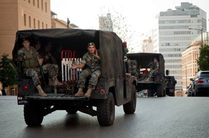 חוששים ממלחמת אזרחים. צבא לבנון ברחובות ביירות (צילום: AFP)