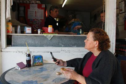 "'מרכז הבורקס' של דוד ויהודה חזן, גם הוא בשוק האשכנזי, הוא הכי טעים בארץ. הייתי היום בדילמה קשה בין התרד לתפוחי אדמה, כמובן עם 'וובוֹס'. הכוונה לביצה שחומה שבוזקים עליה מלח ופלפל. הכל על בסיס שמן, ולמי אכפת מהדיאטה.