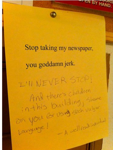כן, יופי, אז מצאנו בלוג עם פתקים ושלטים פסיביים אגרסיביים... אבל למה שבכלל יהיה לכם אכפת? כי הם מצחיקים. ותפסיקו בבקשה לגנוב לי את הסנדביץ' מהמקרר
