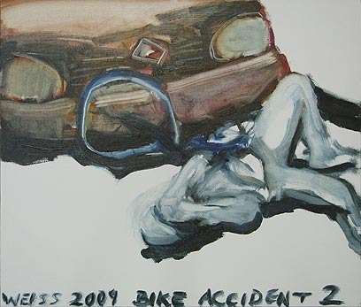 Bike accident, שמן על לוח, 2009 , יואב וייס, מהתערוכה לחם ושושנים