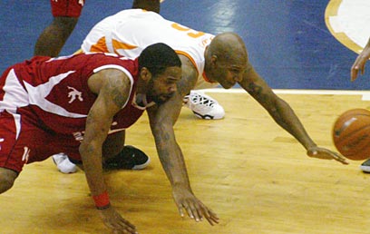 דלרון ג'ונסון בקדנציה הקודמת שלו בישראל, במדי מכבי ראשל"צ (יועד כהן)