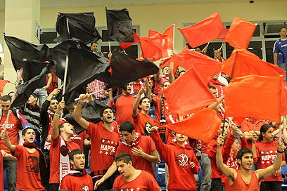 אוהדי הפועל ירושלים. הפסד שישי העונה לאדומים (צילום: עוז מועלם)