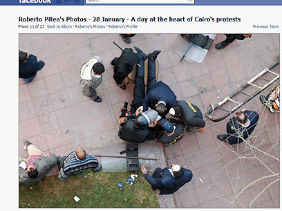 שעתיים אחרי שכתב מוסטפה חוסיין המצרי את הדברים האלו בבלוג שלו והעלה תמונות מההפגנות, הוא עידכן מהסלולרי כי הוא בדרכו לבית החולים עם רבים מחבריו, שנפצעו בהפגנות מירי וממכות. בתור משתמש טוויטר אדוק, שולח חוסיין עדכונים מהסלולרי שלו כל מספר שעות. אתמול אחר הצהריים פרסם תמונות של טנקים מצרים החונים בתוך כיכר מחמוד בקהיר. "אין משטרה בכל העיר", סיפר, "הצבא נמצא בשליטה. ירי נשמע מאזור הפרלמנט".