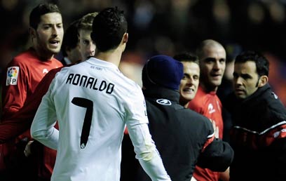 רונאלדו ושחקני אוסאסונה. "מה שעשו - פוגע בכדורגל" (AP)