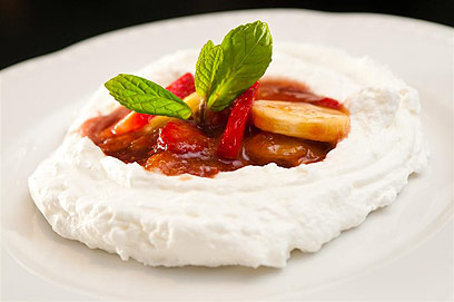תותים ובננות מקורמלים בקרם מסקרפונה (צילום: ירון ברנר)