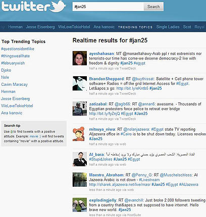 ממשלת מצרים אמנם חסמה את הרשת מאז תחילת המהומות, ואף הורידה אמש את השרתים הפעילים האחרונים. עם זאת, טוויטר מלאה בעדכונים שוטפים ורציפים - הודות לשירות עדכון טוויטר לא מקוון שמעניקה גוגל לאזרחי מצרים.
