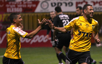 אחמד סבע ופיראס מוגרבי חוגגים את הראשון של נתניה (דרור עינב)