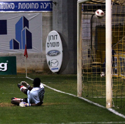 איינוגבה מביט בכדור שבעט סבע חודר אל השער (דרור עינב)