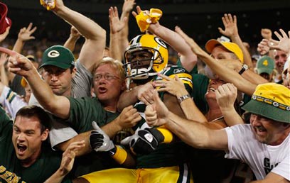 גרג ג'נינגס מהפאקרס חוגג עם הבוסים שלו (AP)