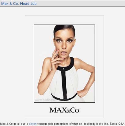 לפנינו עיבוד תמונה טיפוסי למדי לחנות אופנה, שבמבט ראשון לא נראה שמשהו בולט בו לרעה (אוקיי, חוץ מזה שקלי באנדי התקשרה והיא הייתה רוצה את הטופ שלה בחזרה); הגוף עושה רושם פרופורציונלי, ואפילו המותן העגול נשי למדי. אבל השקר הפוטושופי טמון במכלול פרטים הקטנים. מבט מקרוב מגלה שהדוגמנית שלפניכם היא לא מה שחשבתם: