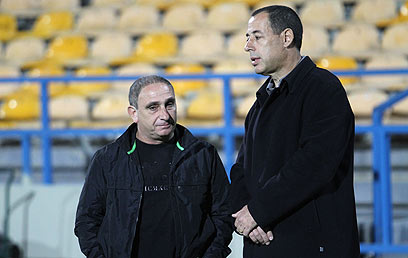לחץ על מרינקוביץ' לחתום. משה דמאיו עם חזי מגן (צילום: אורן אהרוני)