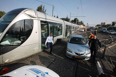 תאונה ראשונה לרכבת הקלה: התנגשות עם רכב