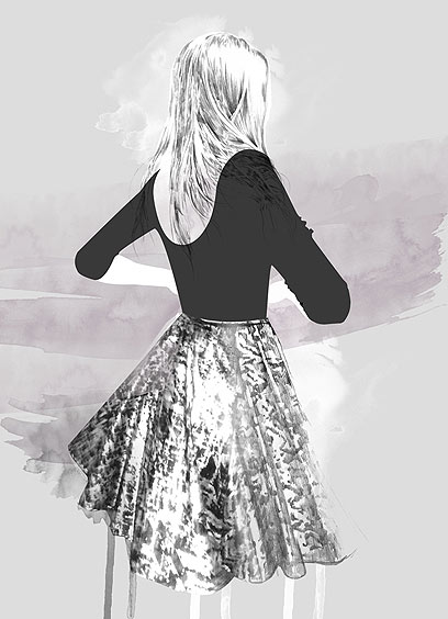 מי: אווה מנדלבאום, מריפוזה, נעלי אוליב תומאס ותכשיטים של עומר.