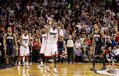 ווייד ומיאמי חוגגים ניצחון ביתי לא פשוט על אינדיאנה (צילום: AFP)