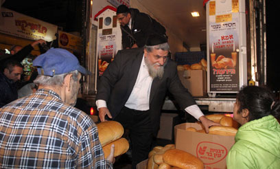 מחלקים לחם בדרום ת"א. "המעמד הנמוך לא מטומטם" (צילום: עופר עמרם)