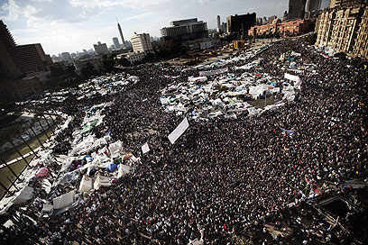 ממתינים לרגע ההיסטוריה. המפגינים בקהיר (צילום: רויטרס)